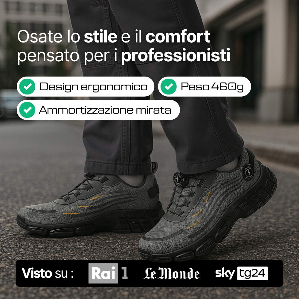 La suola Memory Foam e la struttura leggera garantiscono comfort per 12 ore.