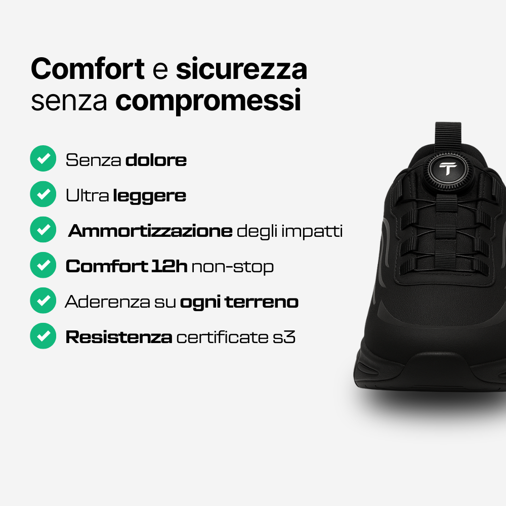 La scarpa di sicurezza che rispetta finalmente i tuoi piedi – una protezione S3 completa combinata a un comfort impareggiabile.
